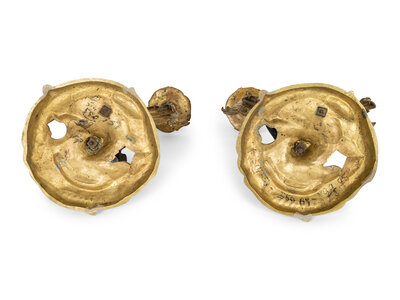 Each modeled with a winged putto resting on a swirling circular base