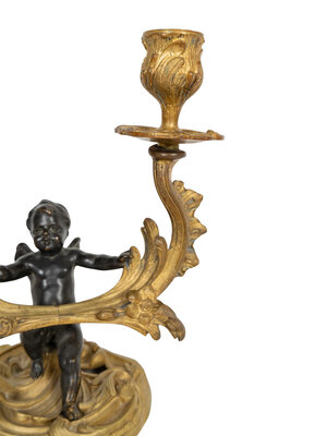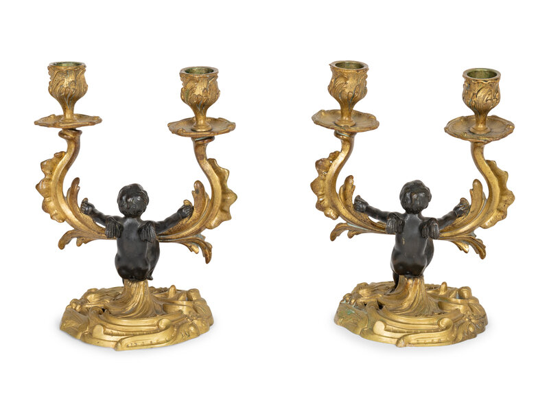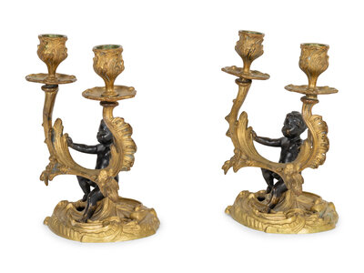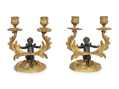 A Pair of Louis XV Style Gilt and Painted Bronze Two-Light Candelabra