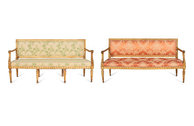 A Near Pair of Italian Neoclassical Cream-Painted Sofas