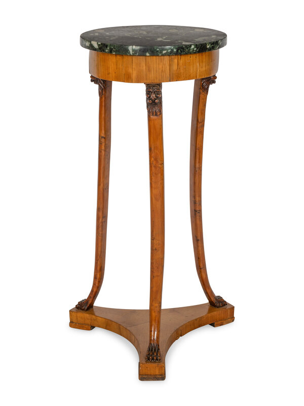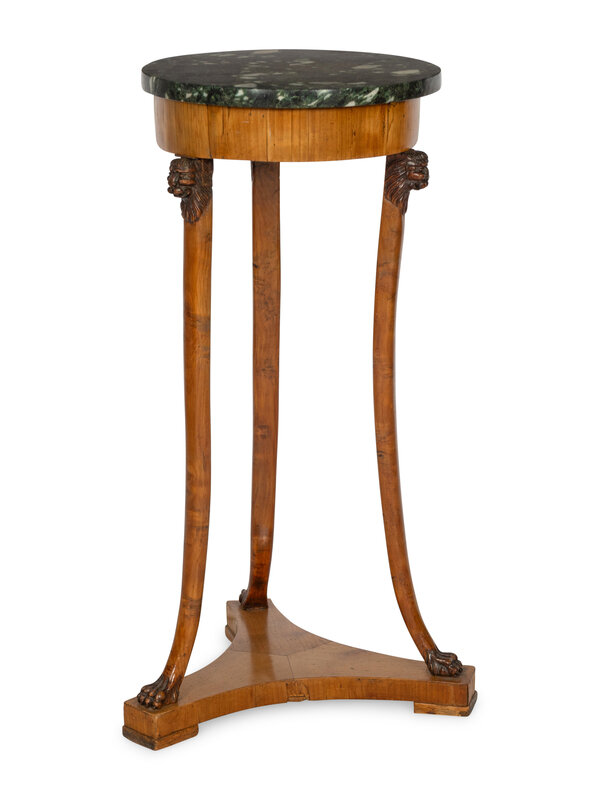 The antico verde marble top resting on lion-form monopodia legs with tripartite base.