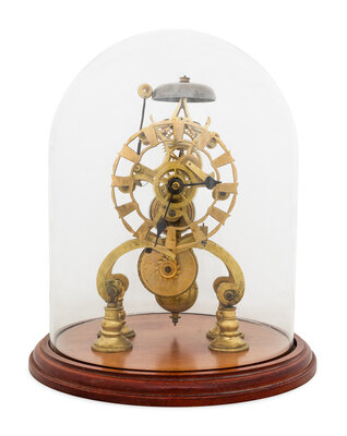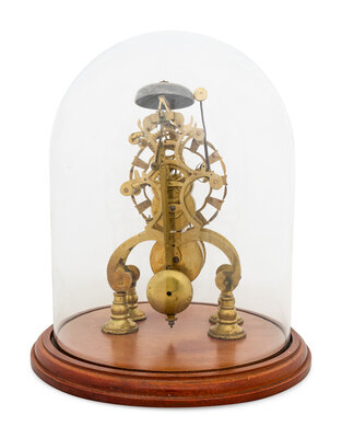 An English Brass Fusee Skeleton Clock and Cloche
