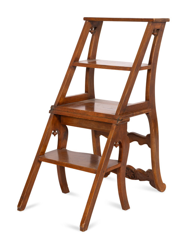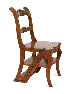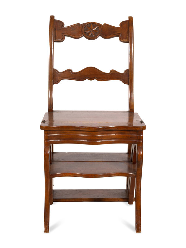 An Italian Walnut Metamorphic Chair and Library Ladder