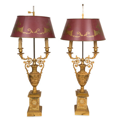 A Pair of Louis Philippe Gilt Bronze Urn-Form Candelabra