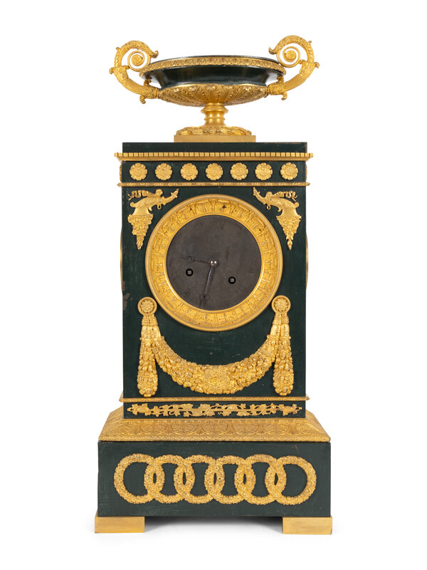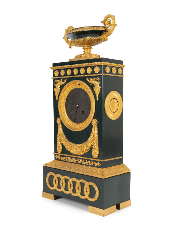An Empire Gilt Bronze and Tôle Peinte Mantel Clock
