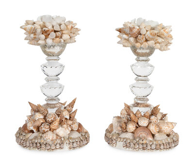A Pair of Shell-Encrusted Table Ornaments