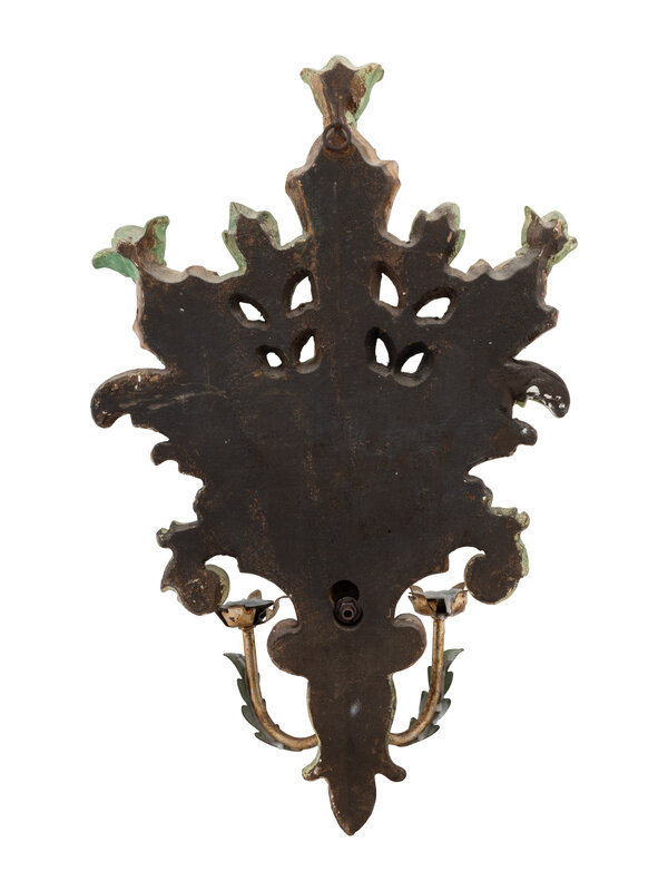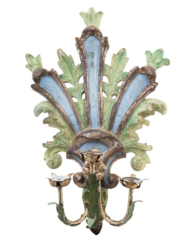 An Italian Painted Wood and Tole Three-Light Candle Sconce