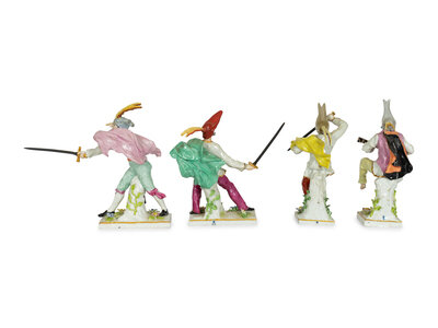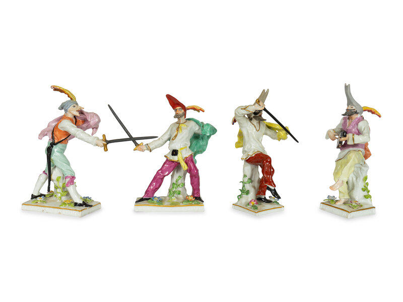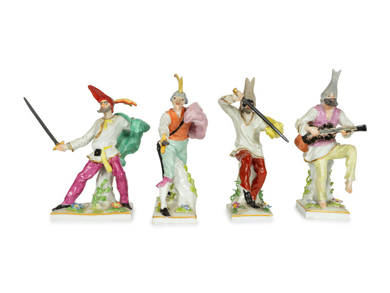 A Set of Four Continental Porcelain Commedia Dell'Arte Figures