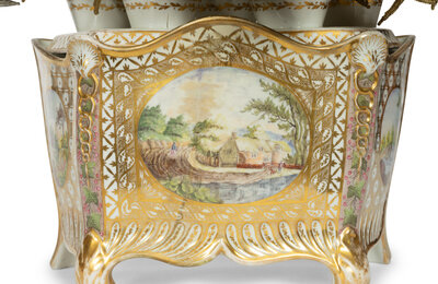 An English Hand-Painted and Parcel-Gilt Porcelain Bough Pot