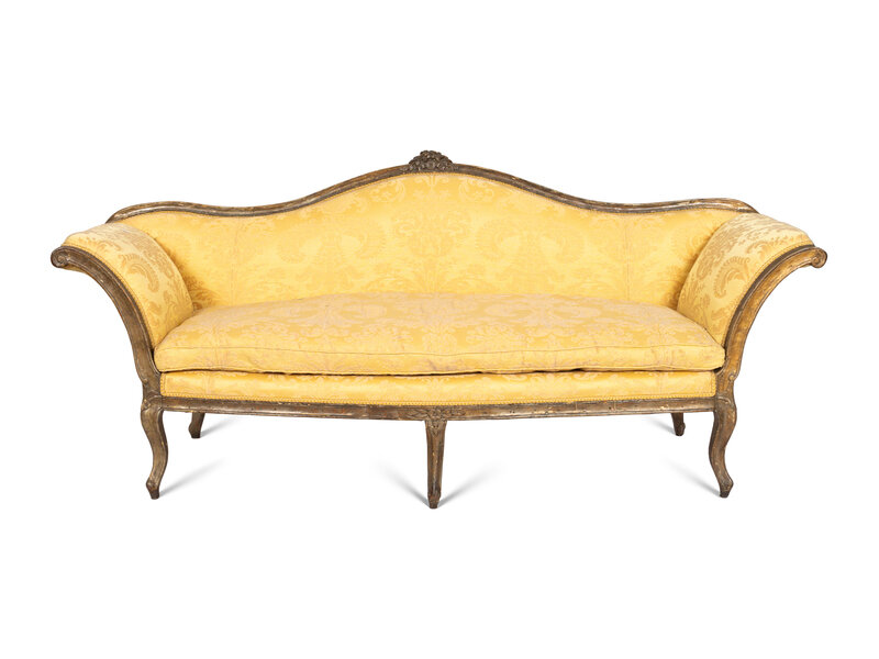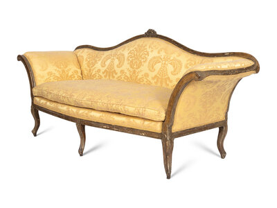 An Italian Rococo Silvered and Gilt Walnut Sofa