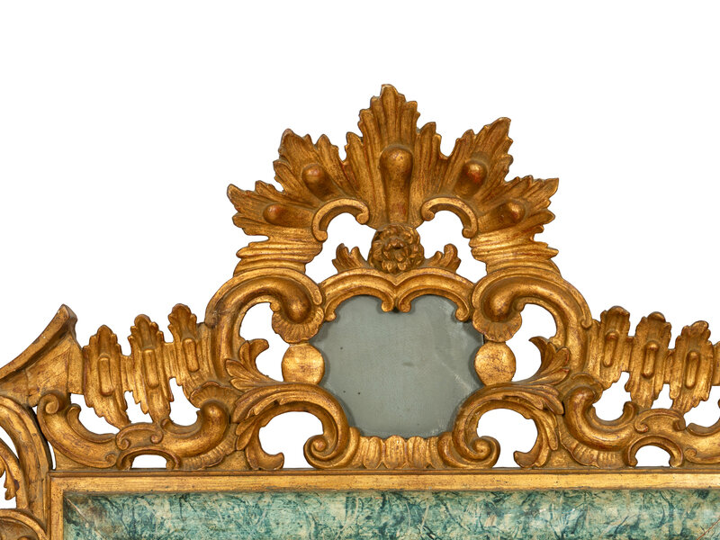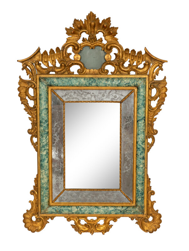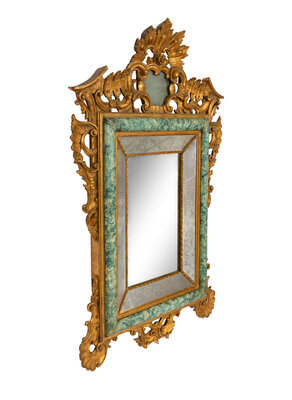 An Italian Baroque Style Giltwood and Simulated Marble-Painted Mirror