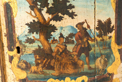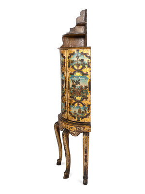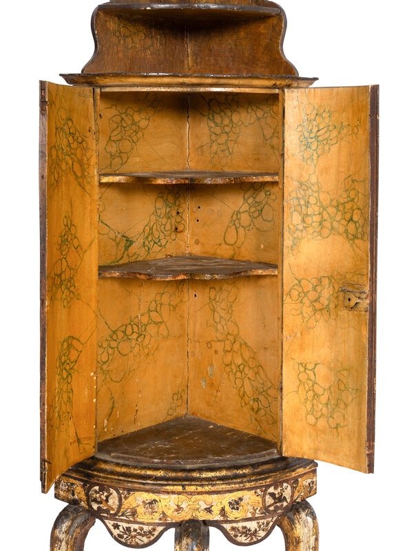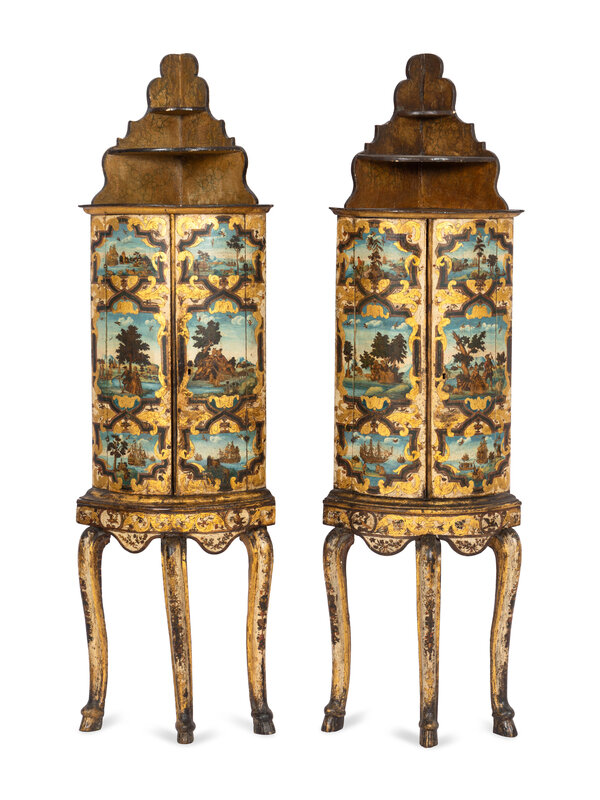A Pair of Venetian Rococo Lacca Povera and Polychrome Painted Corner Cabinets
