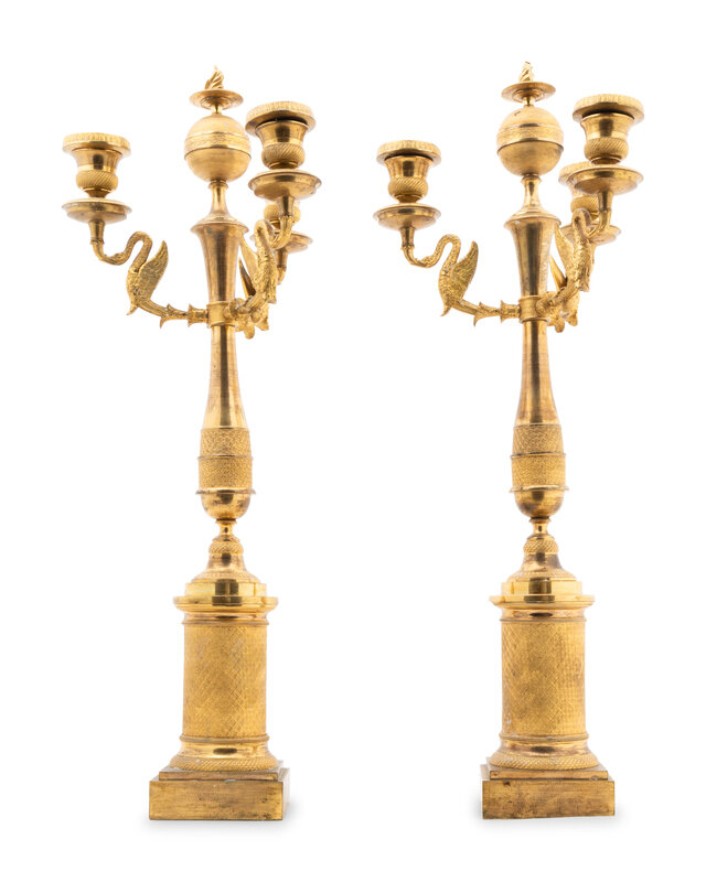 A Pair of Louis Philippe Gilt Bronze Three-Light Candelabra