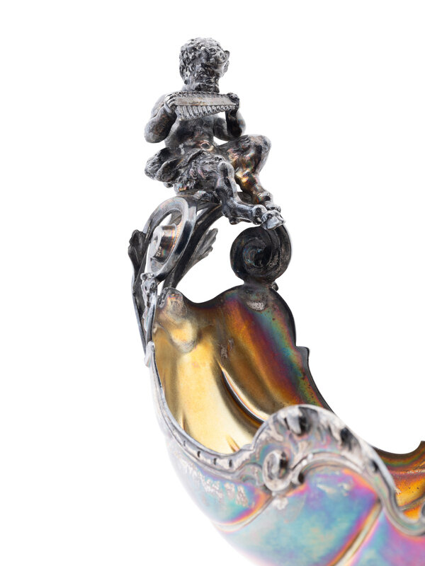 Modeled as a shell surmounted by a satyr playing the pipes