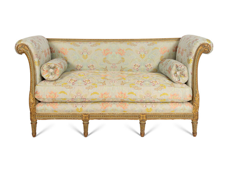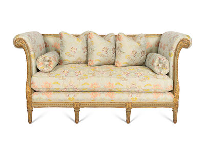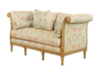 A Louis XVI Style Painted and Parcel Gilt Settee