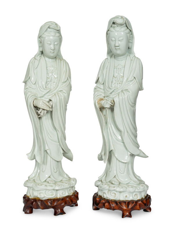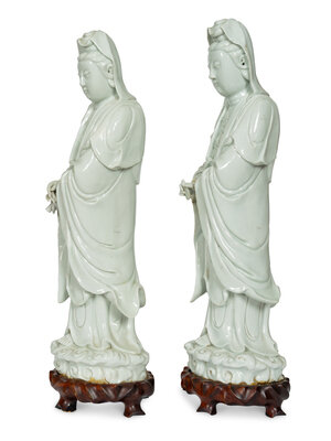 A Pair of Blanc de Chine Figures of Guanyin