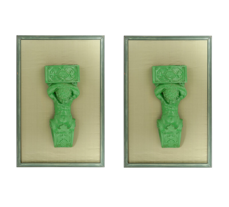 A Pair of Green-Painted Papier Mâché Figural Hanging Jardinières