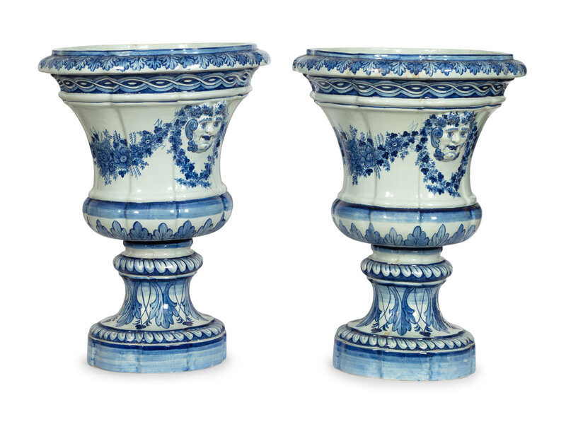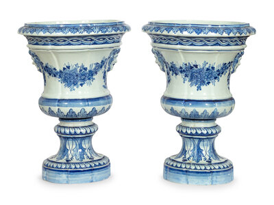 A Large Pair of Portuguese Faience Campana-Form Jardinières