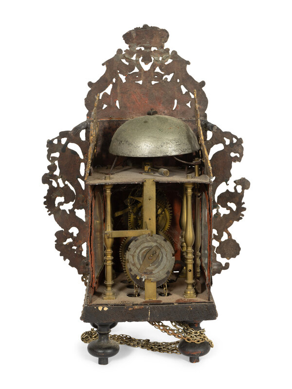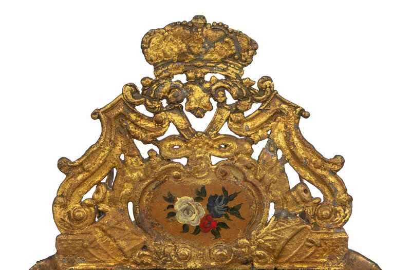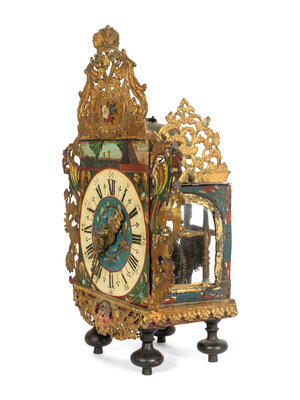 with elaborate polychrome decorated face and lead mounts.