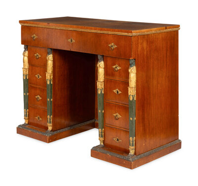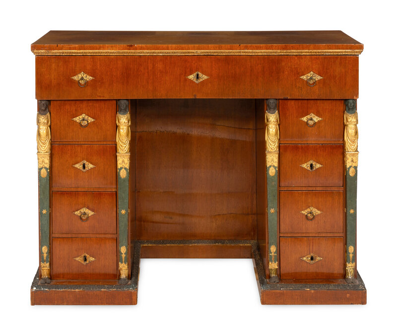 A Continental Empire Style Painted and Parcel-Gilt Mahogany-Veneered Kneehole Desk