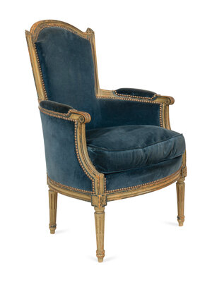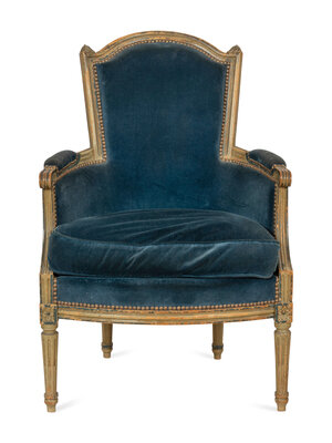 A Louis XVI Blue and Gray-Painted Beechwood Bergère