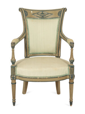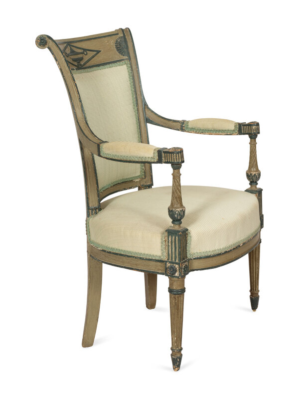 A Directoire Blue and Grey-Painted Beechwood Fauteuil