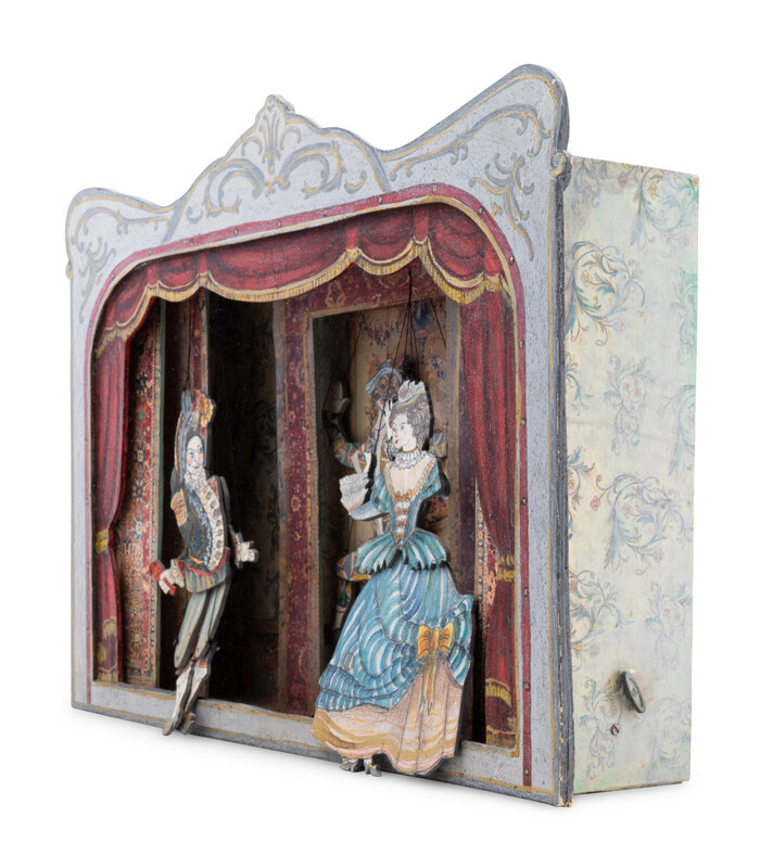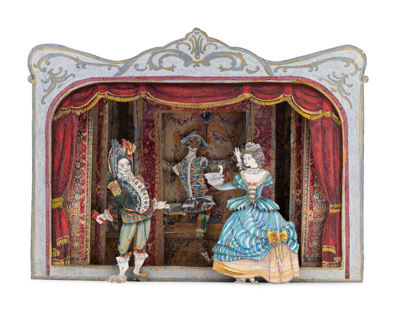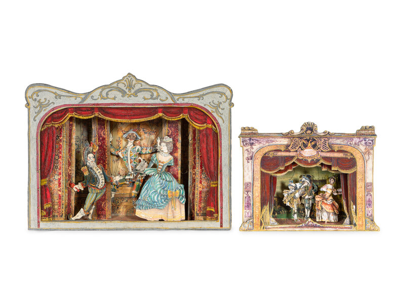 Two Italian Painted and Decoupage Commedia Dell'Arte Dioramas