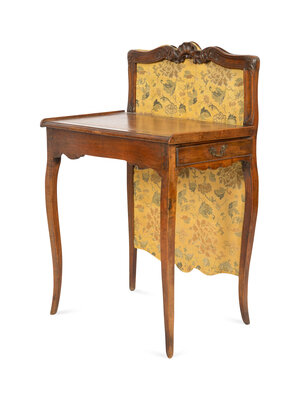 A Louis XV Provincial Mahogany Writing Table with Attached Fire Screen