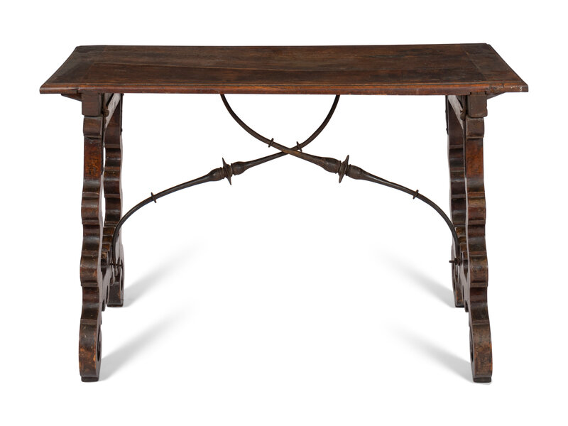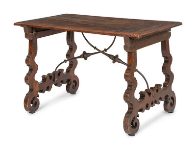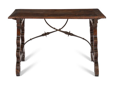 A Spanish Baroque Iron-Mounted Walnut Table
