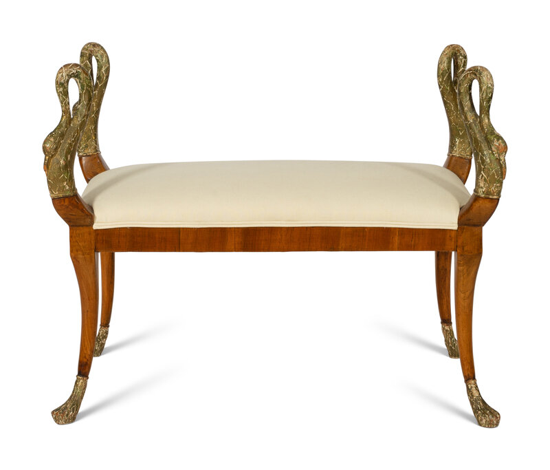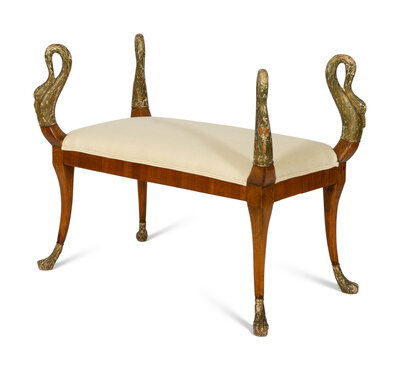 An Italian Neoclassical Parcel Gilt Fruitwood Bench