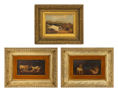 A Group of Three Paintings of Dogs