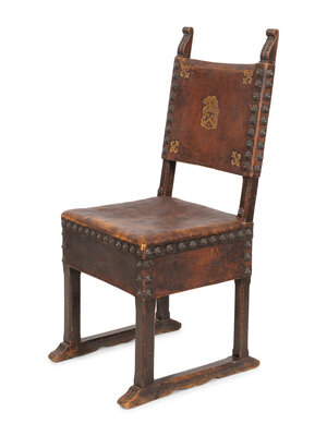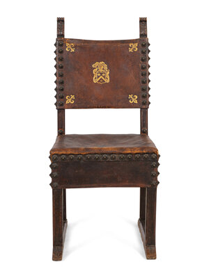 A Baroque Style Oak and Gilt-Tooled Leather Side Chair