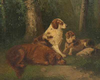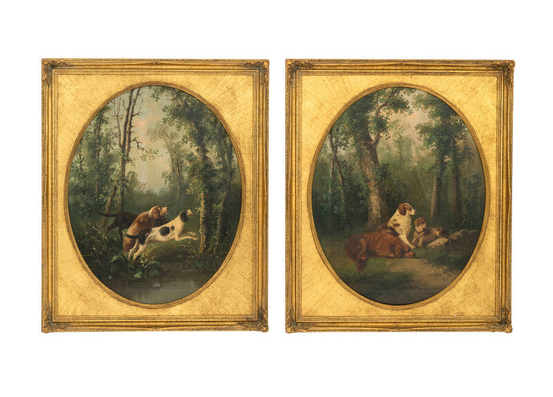 Dogs Hunting and Dogs at Rest (two paintings)