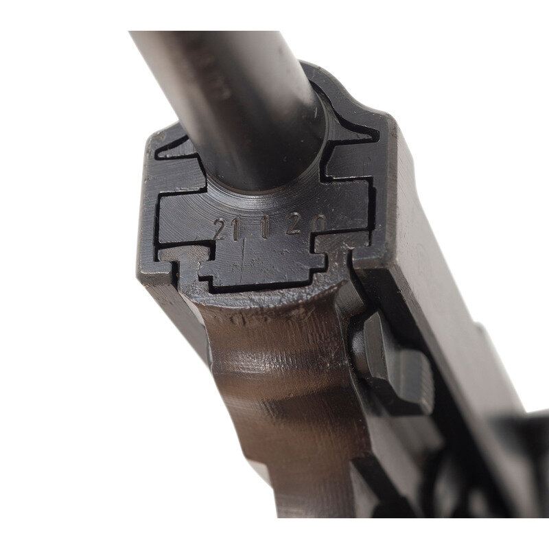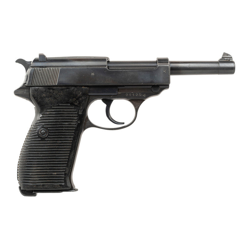9mm Para. 4.9" barrel. SN: 21120. Blued metal refinish overall mounting black Bakelite grips with raised grip serrations and mounting standard rear notch and front blade sights. Short recoil operated DA/SA autoloading pistol fed by detachable single stack magazines. Left side is marked with the {WALTHER} banner fallowed by Waffenfabrik Walther, Zella-Mehlis (Thur)/Walther's Patent Cal. 9 m/m followed by model marking Mod. HP. Item features the {Crown/N} commercial proof marking on the right slide, barrel, locking lug, and frame. Right slide additionally shows the {Eagle/359} waffenamt mark, indicating this commercially proofed handgun later passed through military inspection. Serial numbers match on the frame, barrel, locking lug, and slide. Magazine features the {WALTHER} banner over P.38 9mm. Grips likely replaced. Import markings to the underside of the barrel read 9MM GERMANY/ C.A.I. ST. ALB. VT.