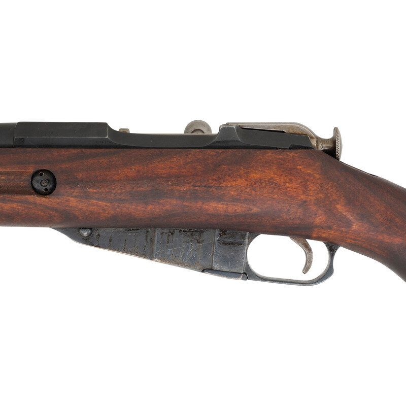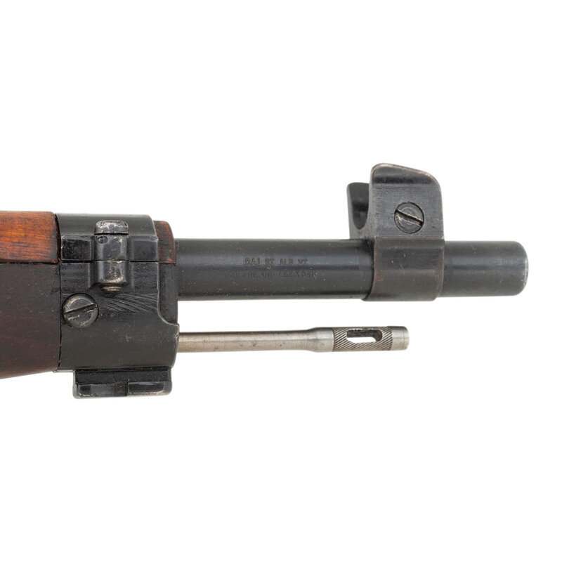 7.62x54mmR. 27" barrel length. SN: D42685. Blued metal finish overall with polished bolt set in Birchwood semi-pistol grip stock with standard spliced forend and full length upper handguard. Bolt-action internal magazine fed repeating rifle mounting rear leaf notch and front blade sights with protectors. Item shows the VKT mark to the barrel shank indicating this component was Finnish made, and further displays the boxed SA marking. A date of 1941 remains legible, but the rifle has been arsenal refinished, and the original markings weakened. Serial numbers match on the barrel, receiver, and bolt, but the magazine floorplate is non matching. Comes with a cleaning rod. Importer mark to the right barrel reads CAI ST. ALB. VT/M39 FINLAND 7.62X54R.