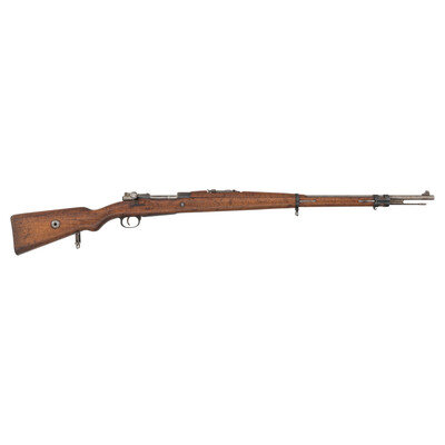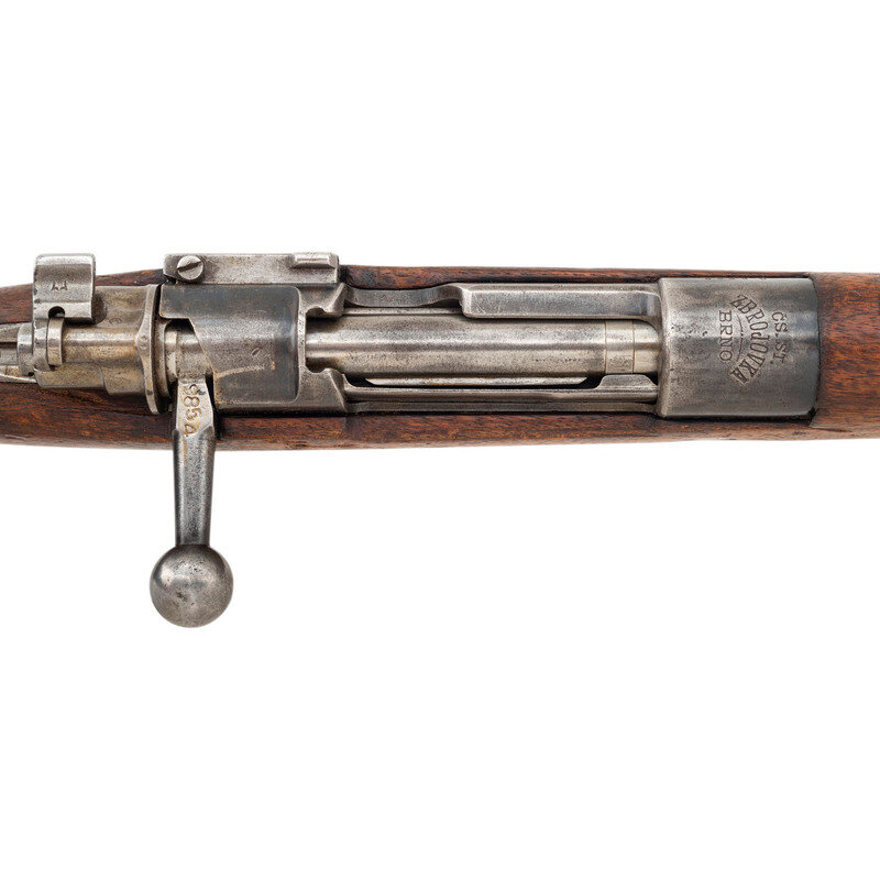 7.92x57mm. 29" barrel length. SN: A8364. Blued metal finish with polished bolt set in a Walnut semi-pistol grip stock with disassembly disc to butt, and mounting adjustable rear leaf notch and front blade sights. Bolt-action internal magazine fed repeating rifle charged with stripper clips and mounting sling loops to the toe and lower barrel band. Receiver marks read CS. ST./ZBROJOVKA/BRNO. Safety lever and rear sight are both struck with Turkish Arabic numerals, indicating this was one of the rifles sent to Turkey as part of their sizeable contracts with Czechoslovakia. Serial numbers do not match. Importer mark to barrel is weak and reads RIDGEFIELD N.J. 8MM.