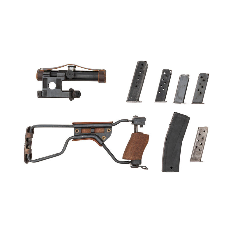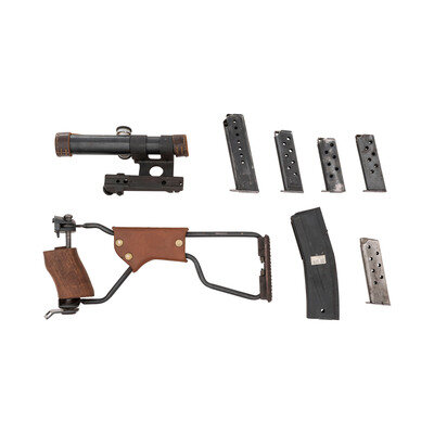 Lot of Assorted WWII-era Accessories Including: Mosin Scope, Walther Magazines, M1 Paratrooper Stock