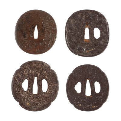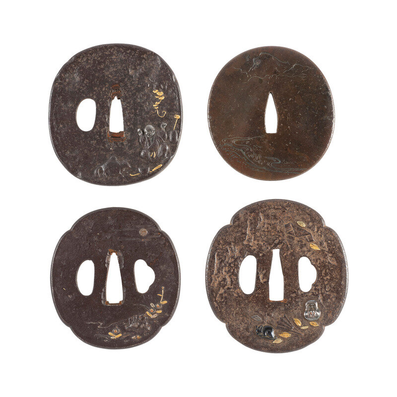 Lot of Four Japanese Tsubas with Folkloric Animal Motifs