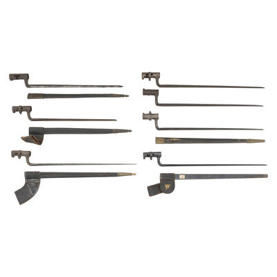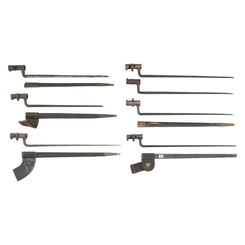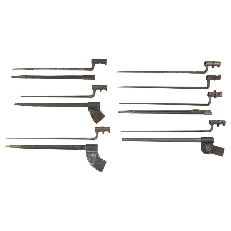 Lot of Seven 19th Century U.S. Socket Bayonets with Five Scabbards, Pre-Civil War to Indian Wars