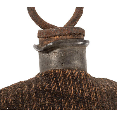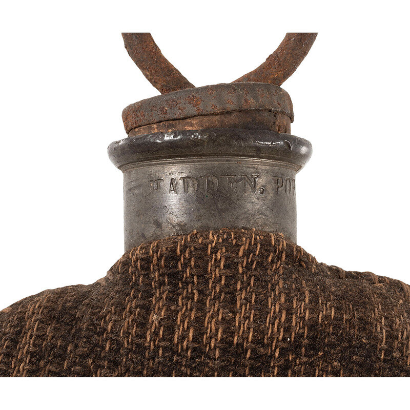 2.) US Pattern 1858 New York Depot "Smooth Side" Canteen. Hole in sling keeper for stopper chain, both chain and stopper are missing. Covered in brownish jean wool with an old ink identification that reads DAVID HERRING/PURNEL LEGION/INFANTRY/MARYLAND VOLUNTEERS/COMPANY A. According to Historical Data Systems David Herring enlisted in Company A of the Union's Maryland Purnell Legion Infantry on September 19, 1861 and was discharged three years later on September 20, 1864. The regiment served in the Eastern Theater and saw action at a number of skirmishes and battles including 2nd Bull Run, Antietam, Cold Harbor and the Siege of Petersburg.