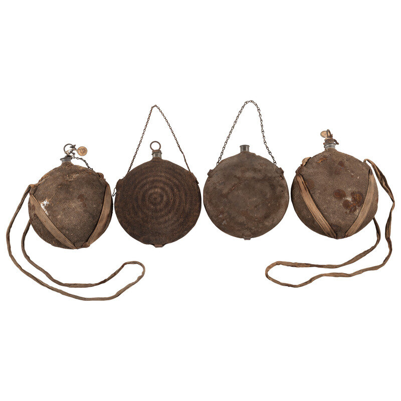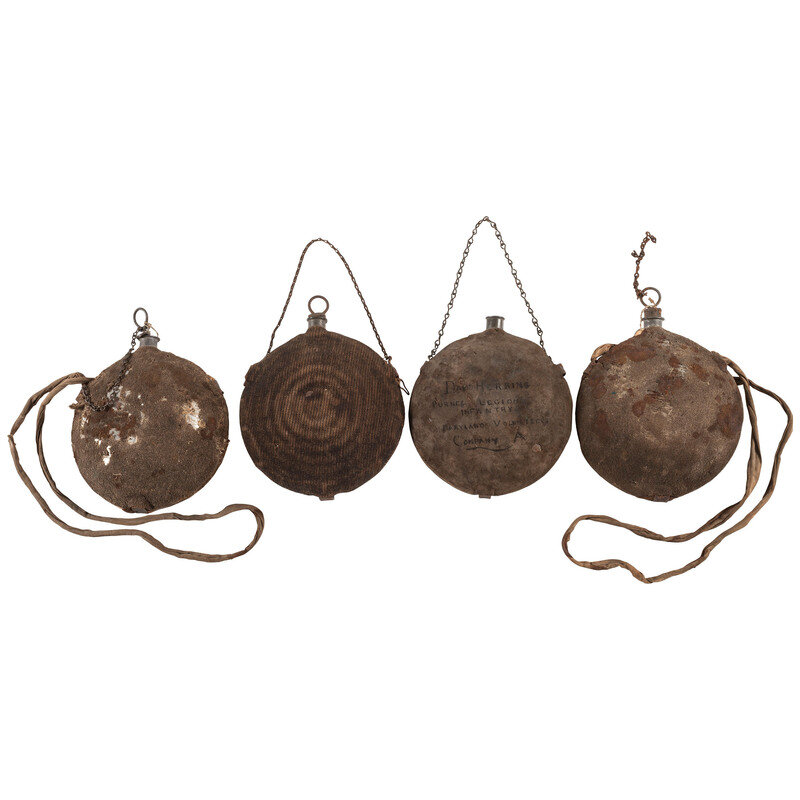 Lot of Four Civil War Union Canteens (3 Smooth Side, 1 Bullseye, 2 Maker Marked)