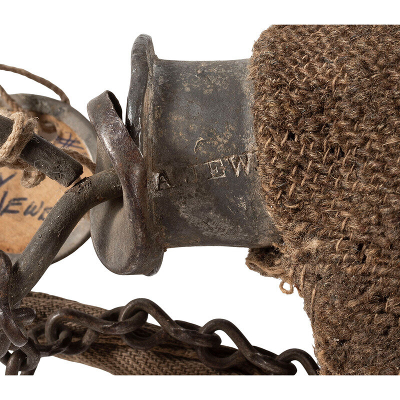 4.) US Pattern 1858 New York Depot "Smooth Side" Canteen maker marked by A JEWET on the spout with chained stopper and folded and sewn cotton drill sling.