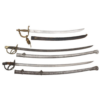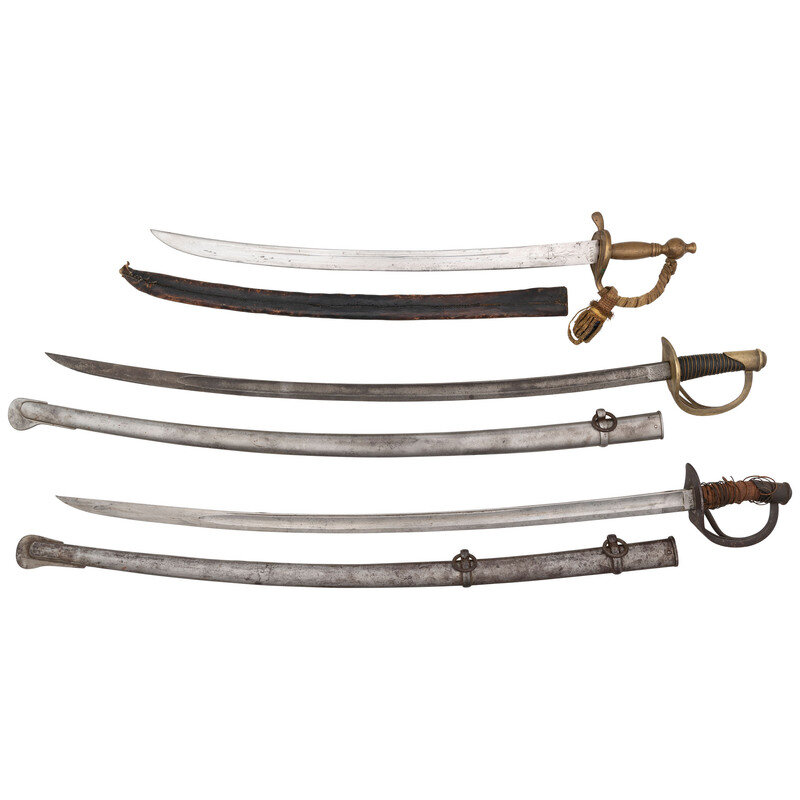 US Model 1840 Cavalry Saber, Reproduction Artillery Saber, and 1860 Pattern Saber of Modern Production