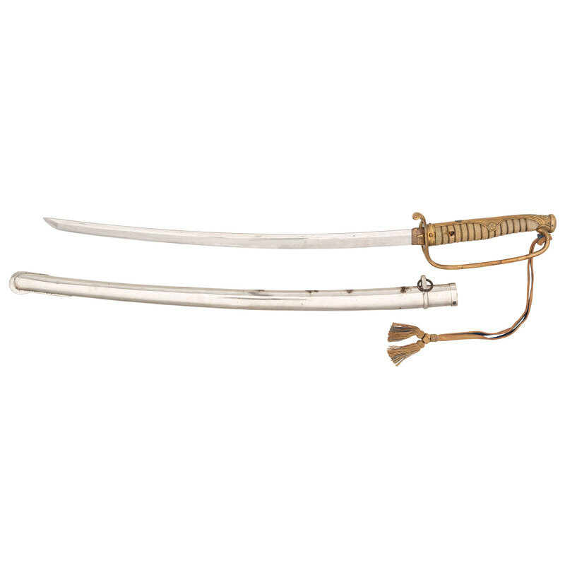 Interesting WWII-era Japanese Kyu Gunto with Officer's Sageo, Mimura Clan Mon, and Koto Blade Signed "Bishu Osafune Kiyomitsu"