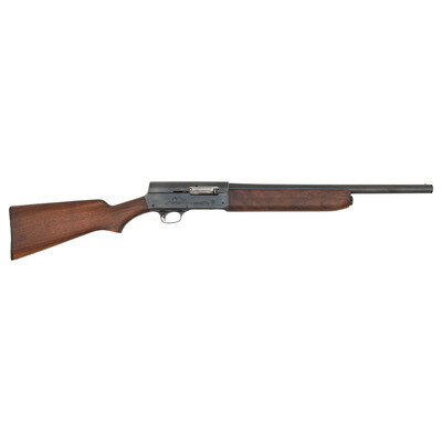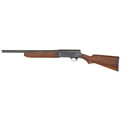 12 Gauge. 19.5" barrel length. SN: 481163. 2.75" chamber length. Cylinder bore. Blued metal finish overall with polished bolt set in smooth walnut semi-pistol grip stock and forend mounting Remington marked synthetic buttplate. Long-recoil operated semi-automatic shotgun fed by an underbarrel tube magazine. Item shows standard make and model marks including MODEL 11 to the bolt, and light engraving of a duck to the left receiver and pheasant to the right. Upper barrel and left receiver struck U.S. followed by the {Ordnance Bomb} stamp. Left receiver further marked MILITARY FINISH. Standard CYL marking to the barrel. Buttstock is unmarked and most likely replaced. Barrel most likely cut down from 20".
