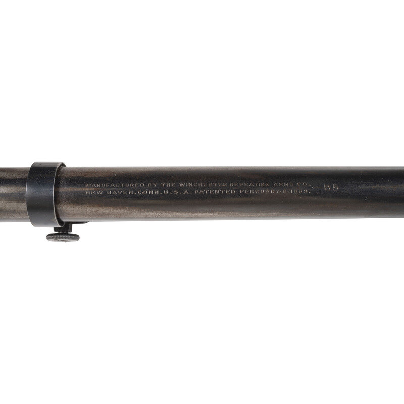 15.25x2.5x2". Blued metal finish to scope fitted to blued two-piece mounts with spring stabilizer to the rear mount with turrets for adjusting windage and elevation. Scope body is marked MANUFACTURED BY THE WINCHESTER REPEATING ARMS CO./NEW HAVEN. CONN. U.S.A. PATENTED FEBRUARY 9. 1909.-B5. Scope mounts are both struck with patent date mark reading PAT. NOV. 5. 1907.
