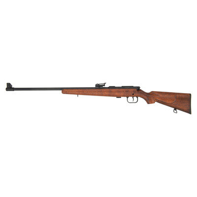 .22 LR. 26.25" barrel length. SN: B01347. Blued metal finish overall with polished bolt set in polished wood semi-pistol grip stock mounting raised tangent rear notch and front post sights with protectors impersonating AK pattern rifle sights. Bolt-action detachable magazine fed repeating training rifle. Left barrel shows wifama marking and a date of 1990 for production. Importer marks include PW ARMS REDMOND WA and model mark wz.78 POLAND/.22 LR.