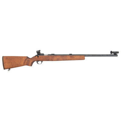 .22 LR. 28" barrel length. SN: AX16778. Blued metal finish with polished bolt set in walnut semi-pistol grip bench rest stock with 13" aluminum rail to forend, and rear sling loop. Bolt action single shot target rifle mounting Redfield/PALMA marked rear aperture and REDFIELD/OLYMPIC/MODEL tunnel front sight. Left receiver struck with U.S. property marking above the serial number. Barrel shows two-line HARRINGTON & RICHARDSON INC./GARDNER, MASS. MADE IN U.S.A. followed by MODEL-M12/.22 LONG RIFLE. Rifle fitted with Unertl pattern scope bases to the barrel and an adjustable trigger.