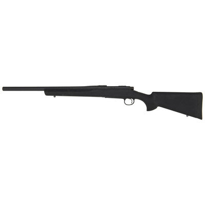 .223 Remington. 20" barrel length. SN: G6873796. Matte black TriNyte finish to metal parts with receiver drilled and tapped for optics mounting set in black synthetic stock with HOGUE pebble texture overmoulded wrist and forend, and mounting rubber recoil pad and front and rear sling studs. Bolt action internal magazine fed repeating rifle. Item shows standard make and model markings including Remington/MODEL 700 to the receiver.