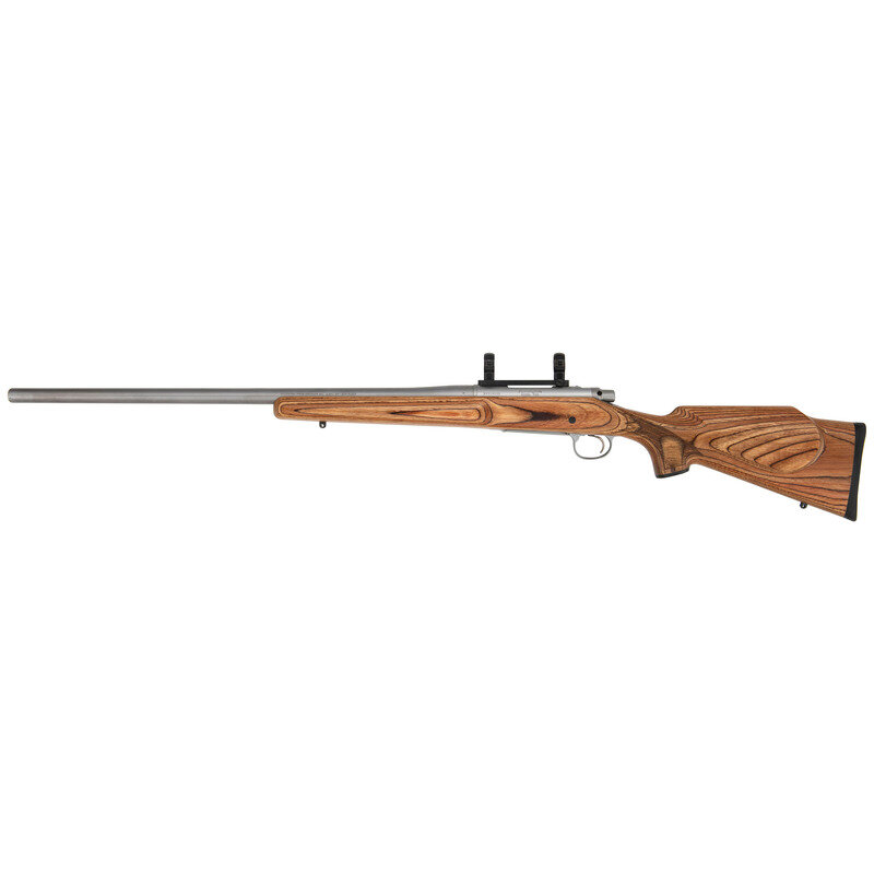 .204 Ruger. 26" barrel length. SN: S6504500. Matte bead blasted finish overall with jeweled bolt mounting blued Burris scope base with 1" rings and mounting laminated wood Monte-Carlo style stock with black rubber recoil pad. Bolt-action internal magazine fed repeating rifle with front and rear sling studs. Item features a knurled bolt handle and skip line checkering to the wrist with beavertail forend. Item shows standard single line address to the left barrel with receiver model mark reading Remington/MODEL 700.