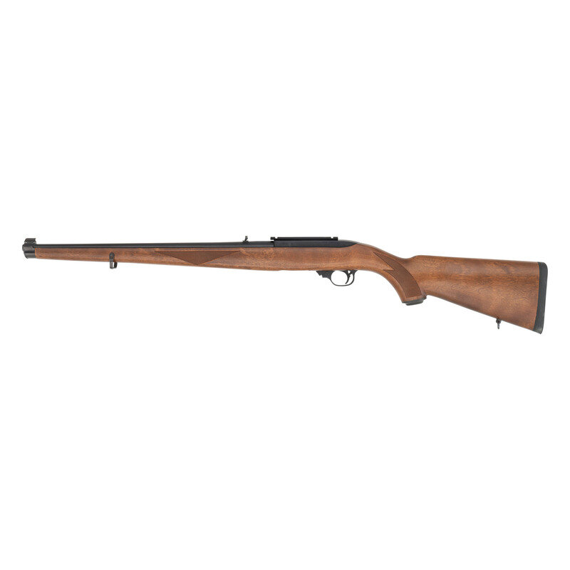 .22 LR. 18" barrel length. SN: 244-95939. Blued metal finish with black alloy receiver. Checkered birch semi pistol grip stock. Semi automatic rifle with folding adjustable notch rear sight, blade front sight, and accessory rail to top of receiver. Item features double sling swivels and a rubber recoil pad. Item is missing magazine.